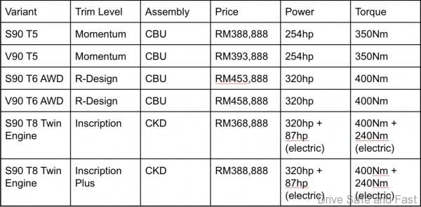 3) We only got a verbal confirmation, but Volvo Car still has some of the CBU variants available. That means for the first time, Volvo’s executive segment is better represented than any of the German brands. Depending on stock availability, there are SIX variants of the S90/V90. It looks something like this: