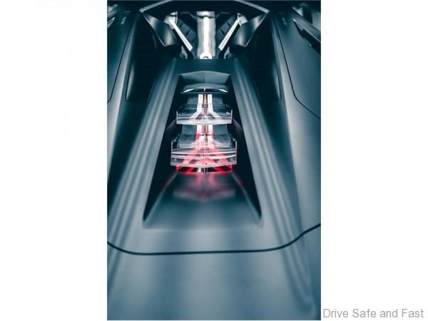 As a result of the change in technologies the design can be a radical expression of aerodynamic supremacy, based around an entirely new architecture, totally dedicated to perfecting airflow. A highly advanced monocoque based on Lamborghini’s Forged Composite technology can be modelled, containing only the energy accumulation system and driver’s and co-driver’s seats, inspired by race cars.