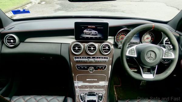 But then you have the RED everywhere to remind you that AMG had their way with the cabin too. The carbon-fibre insert? Red accents weaved into it. Stitching around the cabin? Red. Bucket seats? Red accents. Seatbelts? Red. The colour of safety. RED.