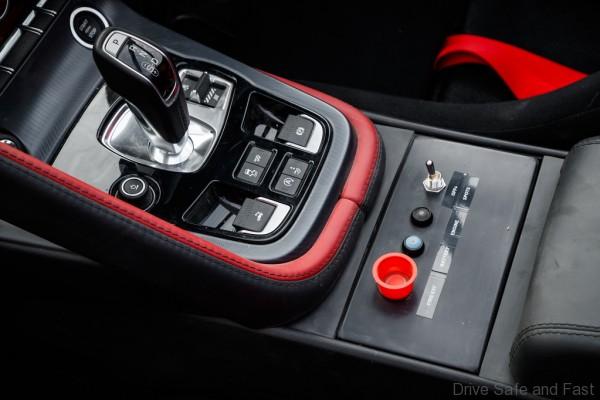 Inside, the luxurious Ebony Windsor Leather interior features Performance seats with embossed Chequered Flag headrests and a Dark Brushed Aluminium centre console trim finisher.