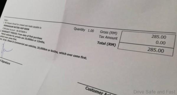 Now it is savings like this that many budget conscious Malaysian drivers need to know. Yes, the new car authorised dealership needs to make money…..but not by 170% plus profit? This is a little too much, plus………..taking into consideration my regular battery supplier is also making a profit at RM285.00.