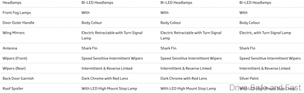 Standard features include 15″ alloy wheels (full sized spare), Bi LED headlights, front foglamps, Bluetooth connectivity, tilt adjustable steering, power windows and more.