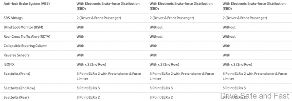 Here’s a breakdown of equipment on each specification. From left to right (Avanza 1.5S+, 1.5S and 1.5E). You may have to squint or head to the Toyota Website for a clearer image.