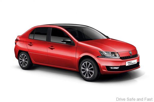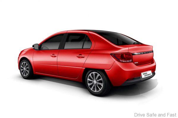 The rear end is thoroughly modernised and here’s where we see a couple of different takes. This red, ‘premium’ spec one has a piano black strip running across the rear and more generic looking rear lamps. The modern looking dual tone alloys look great but don’t quite fit the profile of the Saga as a budget friendly A-segment sedan.