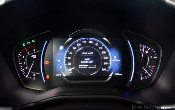 Like the diesel, this variant comes with Hyundai’s HTRAC all-wheel drive system which manages the distribution of the output to all four wheels according to the drive mode selected. For instance, Sport splits the output 50:50 front-rear for better road hugging capability, while Comfort makes it front-biased. The driver gets to see how the torque is distributed through on the instrument panel.