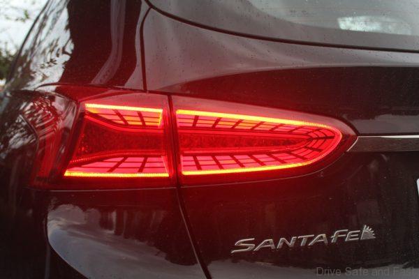 The sharp daytime running lights, the main headlamps underneath as well as the new Cascading grille all contribute to giving the Santa Fe a handsome face, while cool graphics in the tail lights add a touch of opulence to the overall design.