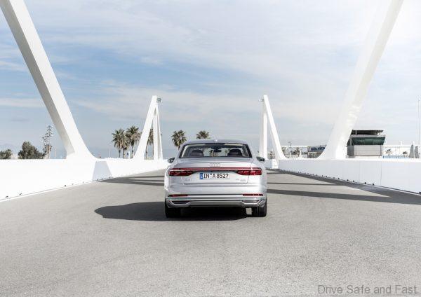 Up front, you get Audi’s HD Matrix LED headlights, while the rear debuts an LED light strip that join both tail lamp clusters.