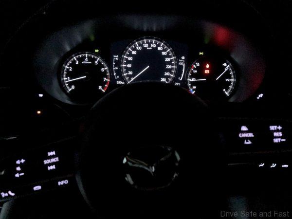 Inside it’s the same. The cockpit is lovely. The dash has form and shape. It’s a delight on the eye. It feels and is upmarket thanks to carefully chosen materials and the way the dash flows seamlessly into the doors while the simple yet elegant instruments seem to float on a pool of hue lighting. It has a long cabin that provides plenty of room and impressive luxury amenities that makes this Mazda3 something of a unique proposition on the luxury sedan market. New to the Mazda3 is the infotainment screen, which is larger and very well place and the instrument cluster which incorporates a digitized screen into the main cluster.