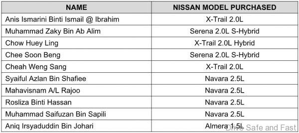 The lucky winners are customers who purchased and registered a Nissan vehicle during the campaign period in May and June 2019.