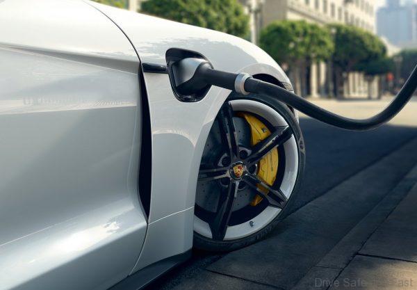 The Porsche Taycan is the first production vehicle with a system voltage of 800 volts instead of the usual 400 volts for electric cars. This is a particular advantage for Taycan drivers on the road: in just over five minutes, the battery can be recharged using direct cur-rent (DC) from the high-power charging network for a range of up to 100 kilometres (according to WLTP).