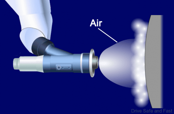 Toyota have developed a new paint atomizer that uses static electricity instead of air in the vehicle body painting process. The airless painting process is the first of its kind and achieves over 95% coating efficiency, which is the highest in the world. Conventional methods only have about 60-70% efficiency.