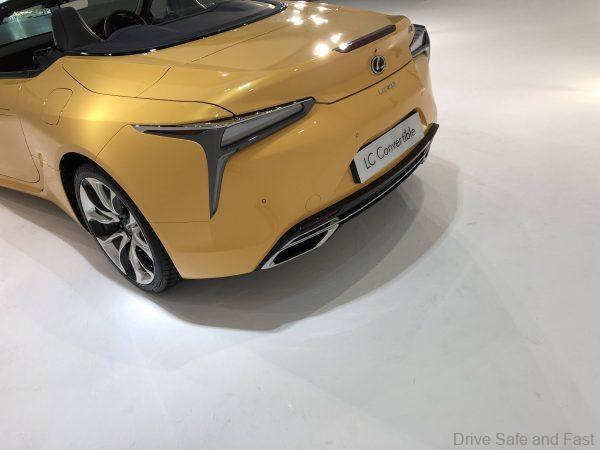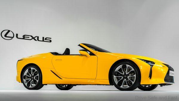 The LC 500 Convertible is offered in White Nova Glass Flake, Deep Blue Mica, Sonic Silver, Terrane Khaki Mica Metallic, Naples Yellow Contrast Layering, Blazing Carnelian Contrast Layering, Radiant Red Contrast Layering, Black, Graphite Black Glass Flake, Dark Gray Mica and Sonic Titanium with roof coloured options in black and beige. In terms of interior colours, the LC 500 Convertible is offered in Flare Red, Black and Ocher.