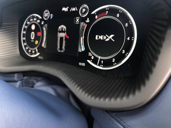Get inside this Aston SUV and you will notice the 10.25″ TFT screen that sits elegantly flushed in the centre console, while a huge 12.3″ TFT screen provides all the necessary information to the driver. Apple CarPlay comes as standard, as does a 360-degree camera system and ambient lighting that offers 64 different colours in two zones.