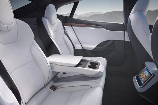 But inside is where you’ll find the majority of the changes. Completely redesigned, the dashboard now houses a 17-inch portrait display with 2200X1300 resolution. According to Tesla, the display has up to 10 teraflops of processing power that enables in-car gaming on-par with today’s newest consoles. Better yet, passengers can play from any seat thanks to a rear-seat display and wireless controller capability.