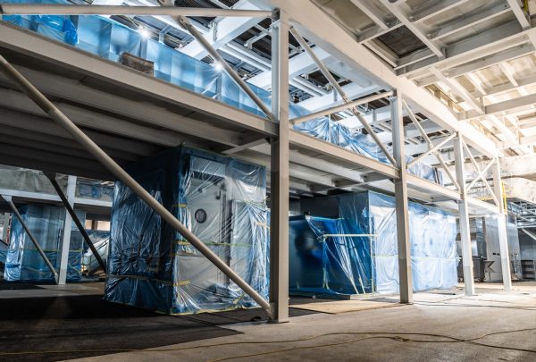 All-new main assembly hall: The centrepiece of Hethel’s upgrades is the most visible, adjacent to Potash Lane and obvious to anyone visiting the factory. The all-new 12,000m2 main assembly hall is the size of 1.5 football pitches, with a glass-walled mezzanine operations deck above. All station gantries have now been installed. Wheel Alignment and Headlamp Aim (WAHA) equipment, a Vehicle Configuration and Test System (VCaTS), monsoon water test booth, rolling road and fuel fill area are all installed and will be commissioned by the end of June.