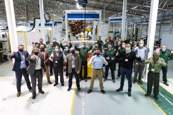 All-new framing line: Now operational, the framing line is building car bodies as part of Emira pre-production, with robots applying bonding agent to the sides, roof and cantrails.