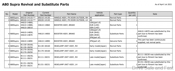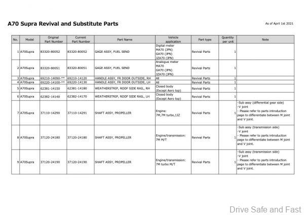 In support of customers who wish to continue driving older vehicles that are full of memories and that they truly love, the project reproduces spare parts that have been discontinued, and sells them as genuine parts. For the A70 and A80 Supra, this will be the first addition since spare parts were announced in 2020.
