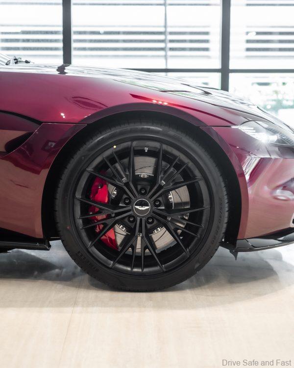 Aside from the new front grille, Aston Martin Vantage Liquid Crimson also features the newly introduced options by Aston Martin Lagonda this year – with the Black Wings Badges and the 20” Snowflake Wheel. The new wheels are 6.23kg lighter than the standard cast wheels. Added with the exterior black package (black painted front grille, mirror caps, roof panel, window surround finisher, rear diffuser Insert and blades), it injects an extra boost of energy to its sportiness.