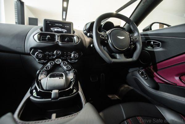 Aston Martin is renowned for its leather and Vantage Liquid Crimson’s interior features the Caithness leather. Caithness leather is a very high-end, soft and natural product choice to create a luxury interior. The key to this luxury feel is milling which is a softening process when manufacturing leather – the longer the leather is milled, the softer and more luxurious the leather will feel.