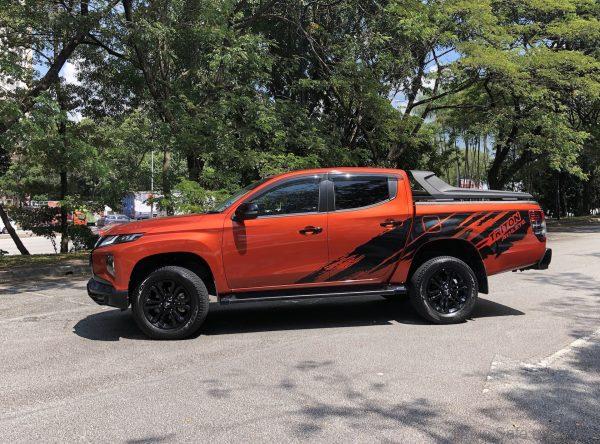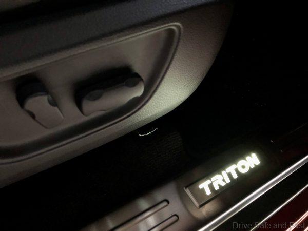 The Triton’s tougher outlook is further complimented by a black theme including side mirrors, door handles, aero type window deflectors, 18-inch gloss black rims and side steps.