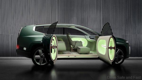 The SEVEN Concept also features a flat floor, pillarless coach doors and a retractable control stick that is hidden when not in use. The seating arrangement in this concept car is rather unique, with swivelling lounge chairs and a curved bench seat – all fully customisable by the driver. They’ve even fitted this concept with a built-in mini fridge. Something tells us that the production model called the IONIQ 7 will be a lot less extravagant than this. The SEVEN also features IONIQ’s signature Parametric Pixel headlights with a Welcome Light Sequence on start up.