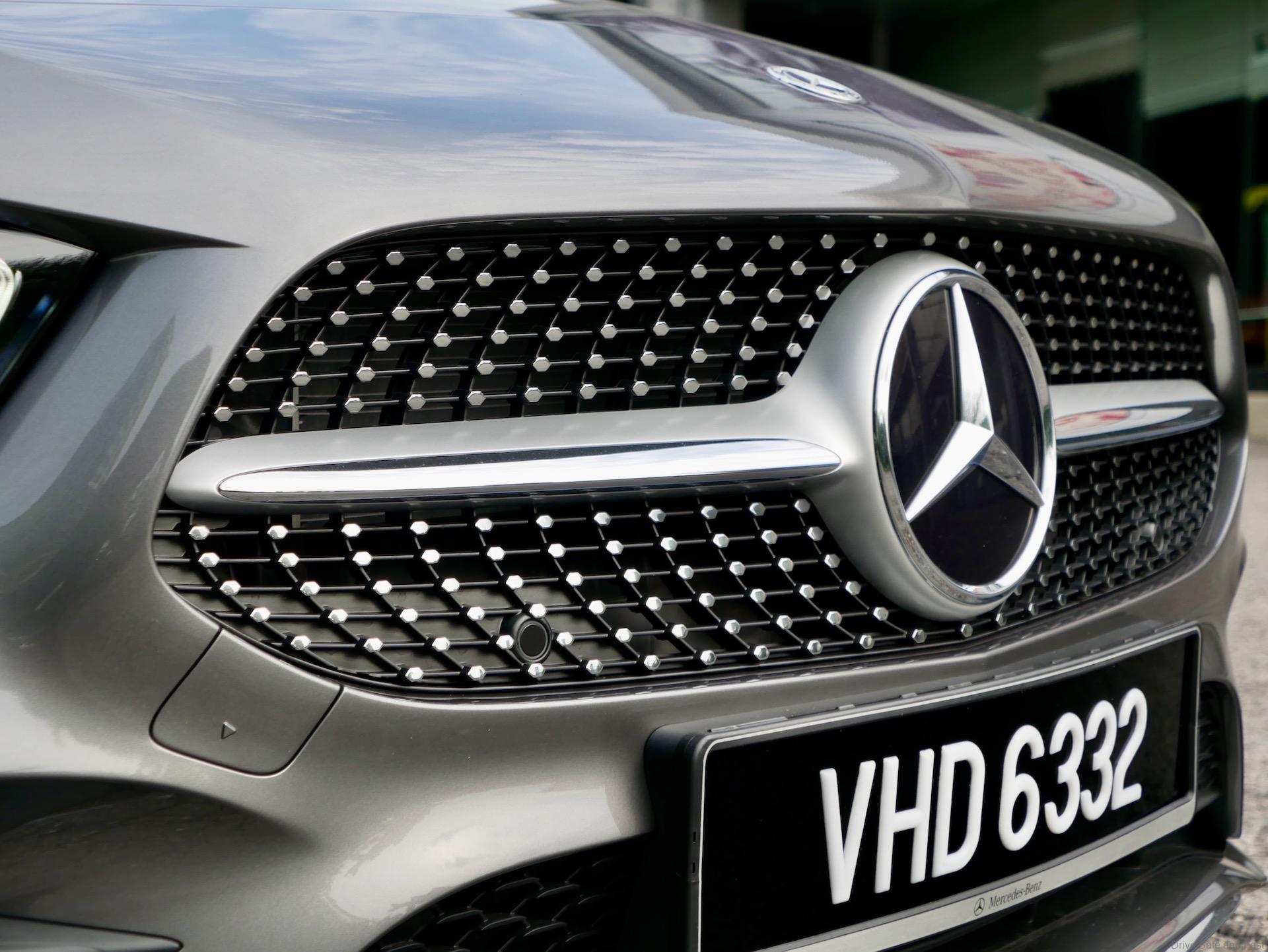 The front-end is essentially unchanged from the A-Class hatchback, but it works perfectly well here. The starry-style AMG Line front grille gives the face an expansive and luxurious air.