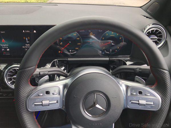 The 2.0L 4-cylinder turbocharged petrol engine is very perky and responsive and provides for a top speed of 240km/h when needed from an engine output of 224hp and a very impressive mid-range punch of 350Nm of torque. This GLA in ‘sport’ mode sprints from 0-100km/h in just 6.9 seconds with an 8-speed slick shifting gearbox working quick.