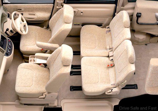 This 2.0L engine was good for 145 horsepower and 179 Nm of torque working with a 4-speed CVT. From the showroom it came with 15-inch alloy wheels with wide 195 tires, a cabin foldable TV mounted between the front seats (on the roof, parking sensors and a steering column gear-shifter (this frees up space between the driver and front passenger)