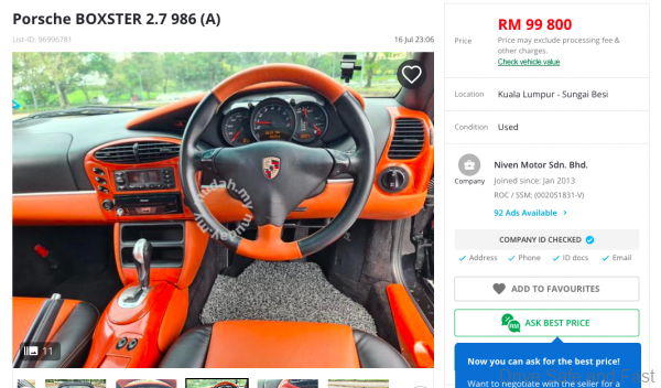 Most owners trade this early Porsche drop-top amongst friends or keep it for their next generation. So, you might have to increase your budget to RM95k or so and look at a year 2000 next generation Boxster 3.2L which sells from RM90k to RM135k.