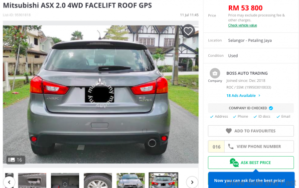 Mitsubishi Motors Malaysia sold the locally assembled ASX from RM104k for the 2WD variant, while the 4WD was priced at RM125k when brand new.