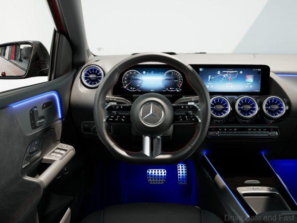 As with the A-Class, the petrol engine range has been electrified with a 48V system for 10kW of additional boost. A new starter generator is included for smoother start-ups and sailing mode for when cruising. The Plug-in Hybrid powertrain also get a better high-voltage battery with 11kW AC charging instead of 7.4kW. The electric motor in this models has been improved by 5kW.