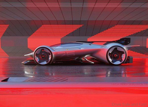 Ferrari shows what a virtual concept car for the Gran Turismo video game would look like.