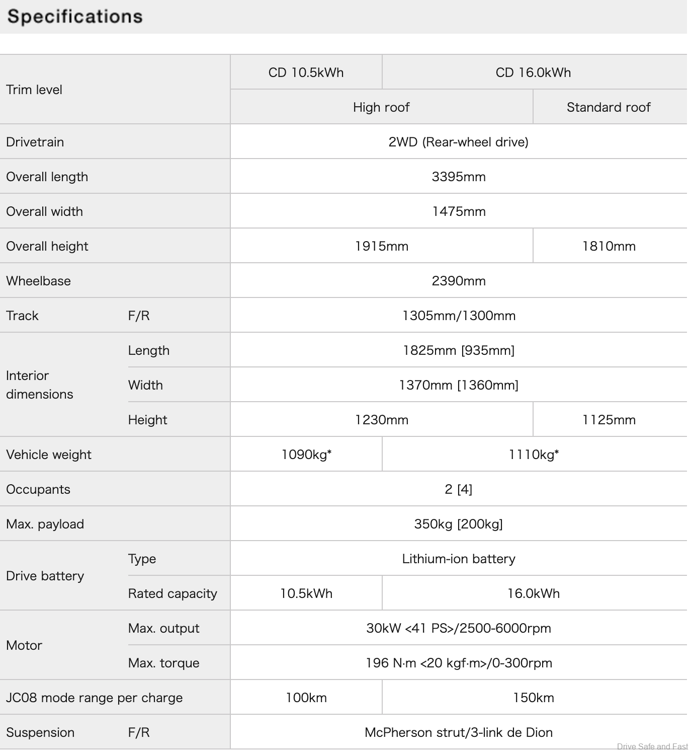 Here’s the Minicab MiEV’s specifications from its original 2011 launch. From what we understand, it’s the 16kWh version that will be made in Indonesia.