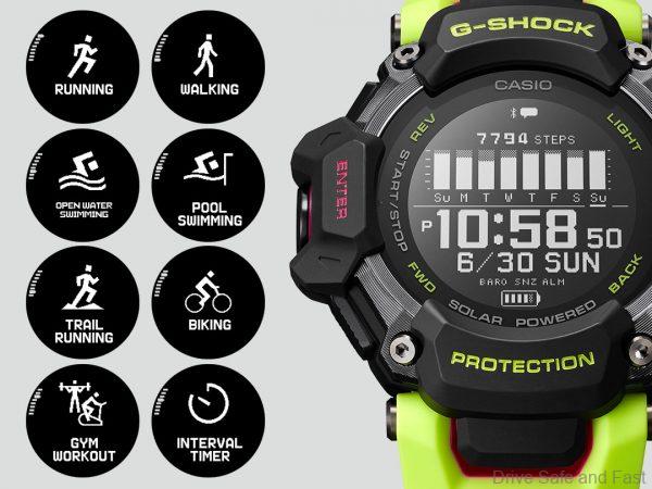 One of the notable features of the GBD-H2000 is its lighter weight. Casio achieved this lighter weight design by creating a more compact case with a built-in GPS antenna and carbon fiber-reinforced case back. The result is an even more comfortable fit on the wrist that does not interfere with arm motion.