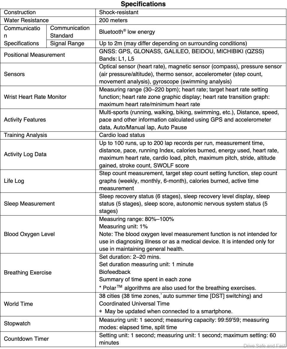 Training analysis functions are included, along with these activity measurements. Developed by Polar Electro Oy, a pioneer in the industry with nearly 50 years of experience in personalized guidance in fitness, sport, and health, these algorithms measure the burden on the heart and lungs, analyze ratios of energy used separately for carbohydrates, proteins, and fats, and perform sleep tracking.