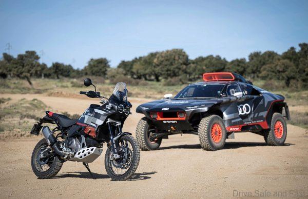 The DesertX now flaunts a captivating black, gray, and red color scheme, adorned with graphics paying homage to the advanced technology of the Audi RS Q e-tron. To complete the stunning design, a striking red accent is integrated into the black saddle, adding an extra touch of flair.