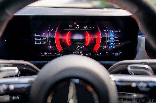 These AMG models come with a revised look featuring an AMG-specific radiator grille, new round badge with the AMG emblem instead of the 3-pointed star, new 19″ wheel designs, rear spoiler lip, lights. Both models come with red-painted brake calipers and Adaptive Highbeam Assist Plus. Inside, both models come as standard with Artico man-made leather and Microcut AMG upholstery, aluminium AMG Design trim elements in black and silver, red seat belts, AMG floor mats, 64-colour ambient lighting, and AMG illuminated door sills. The same improvements to MBUX have been made but with AMG designs. USB ports too come with the same upgrades as the rest of the A-Class range. The AMG vehicles enjoy Burmester surround sound.
