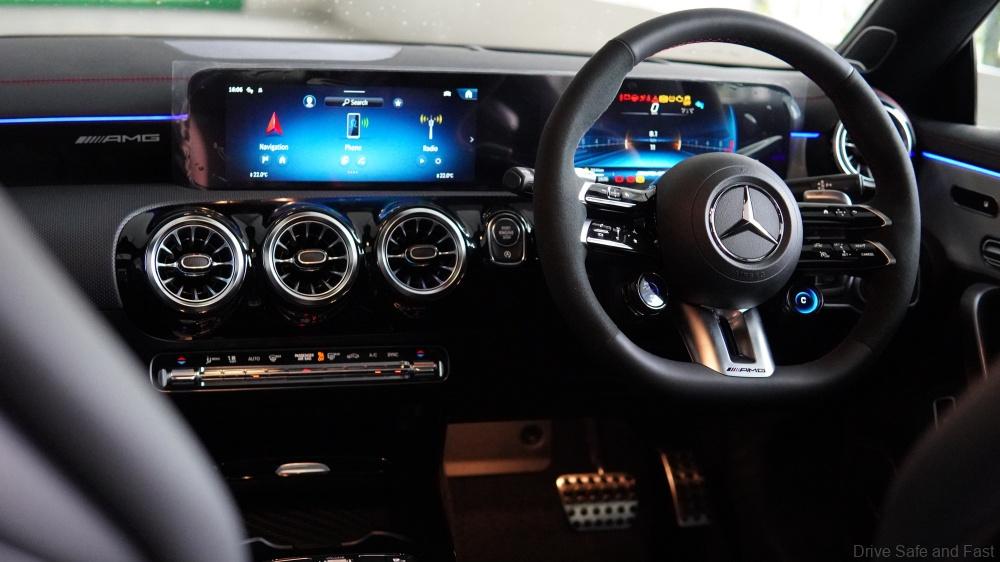 The latest iteration of MBUX on the coupe includes the recognisable “Hey Mercedes” voice assistant. The MBUX Interior Assistant equipped in the AMG CLA 45 S detects, interprets, and differentiates both the driver and front passenger’s hand and arm movements through the advanced 3D camera system too.