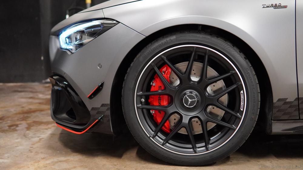 On top of that, the interior features two 10.25-inch displays offering a holistic high-tech experience and creating an exceptionally open spatial architecture. The AMG CLA 45 S also offers the new AMG Performance steering wheel with double-spoke design in nappa leather/MICROCUT microfiber and seamlessly integrated buttons.