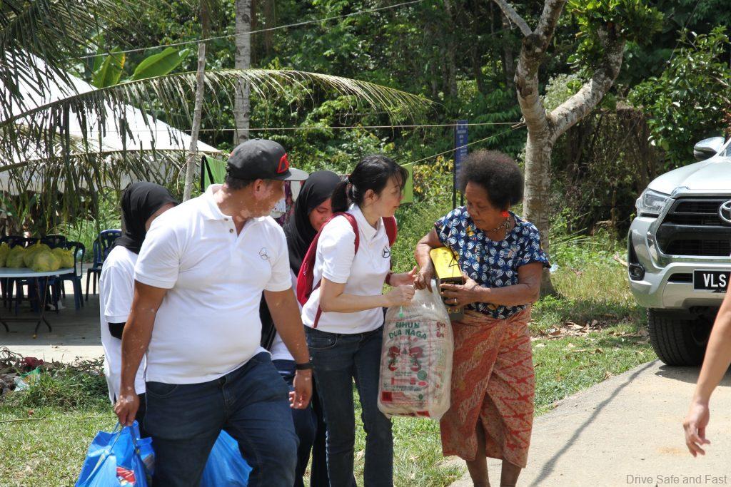 This was part of Mercedes-Benz Grants for Good programme, which saw employees deliver and install 20 SunKing Pro Solar Lights with panels to these orang asli families. Besides the solar-powered lights, MBM also brought with them towels, blankets, clothes, and toys donated by its own employees. These contributions were hand delivered by MBM employees who drove Mercedes-Benz SUVs for 3 hours to reach the remote villages.