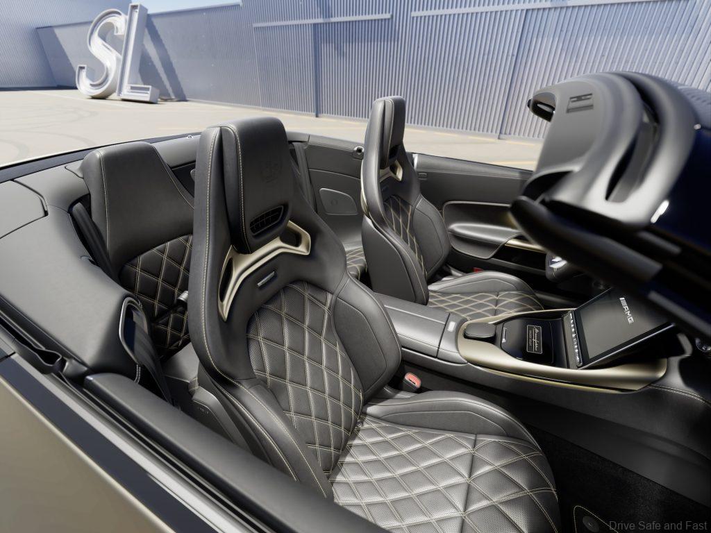 Occupants can revel in the SL’s luxuries like AMG Performance seats with heating/ventilation, the premium Burmester surround sound system, AIRSCARF neck-level heating and more.