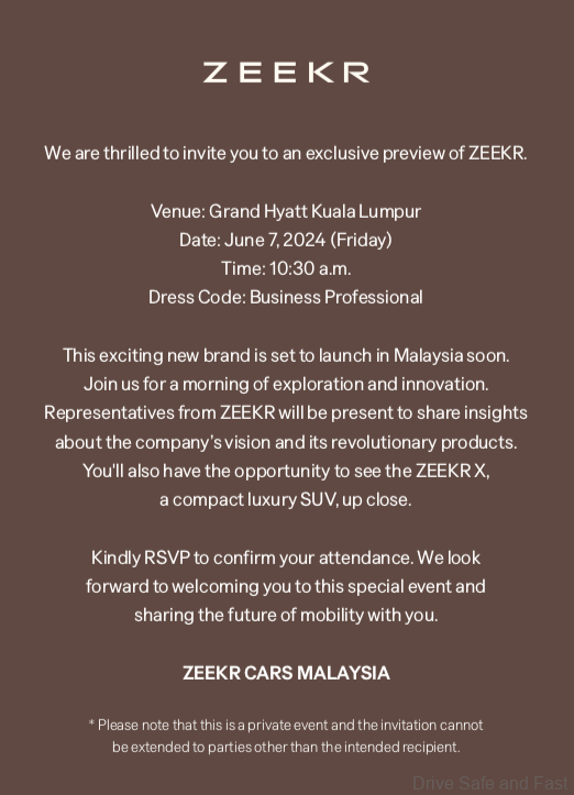In the same press release, Zeekr Global mentions that they have previously announced sales plans for Southeast Asian markets including Singapore, the Philippines, Laos and Myanmar but there is NO MENTION of a Malaysian introduction.