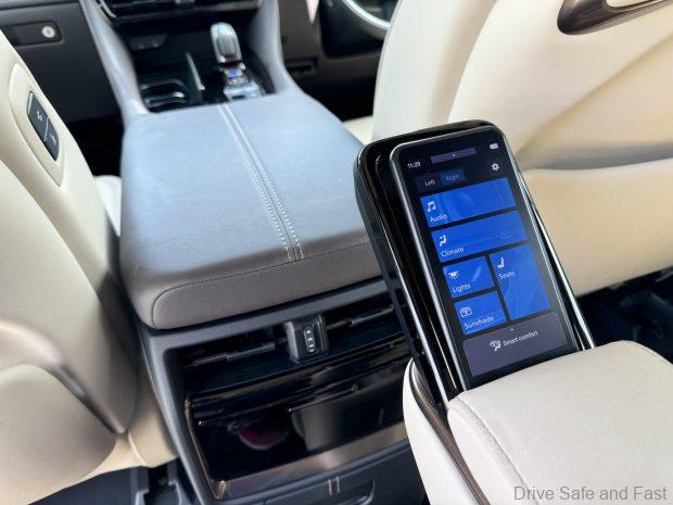 There are 15 JBL speakers inside this cabin. On the dash center you have a large 14-inch display and the driver gets a 12.3-inch TFT colour screen. You get power rear doors with driver controls, the climate system is Nanoe X equipped, passengers sit on soft well padded Nappa leather seats with climate vents built in. Rear passengers get a 14-inch screen that is powered and operated by wireless seat controls.
