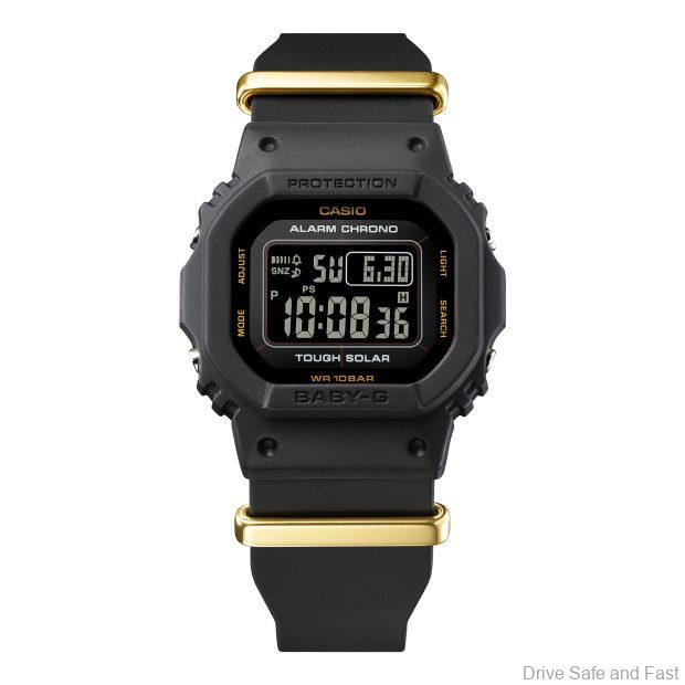 • The BGD-S565ZE is based on the iconic BGD-565 model from the BABY-G line, which is known for its compact, shock-resistant design tailored for women. This anniversary model is the first BABY-G to incorporate bio-based resin and Tough Solar charging, making it both eco-friendly and efficient. Gold IP-treated band rings engraved with “50th ANNIVERSARY” complete the design, adding an elegant touch to this functional watch.