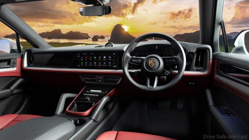 The new Cayenne also comes with smooth-finish leather upholstery in Black or Bordeaux Red, 14-way adjustable comfort seats with a memory package, four-zone climate control, and rear side window sunblinds. For passengers’ comfort, Rear Seat Entertainment pre-wiring is available, with optional rear screens for an immersive experience.