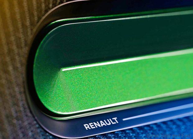 Interior upholstery draws inspiration from the first-generation Twingo’s vibrant patterns, coordinating with the exterior body color through subtle accents on the front door panels and passenger-side dashboard. The prototype features an innovative tinted cork floor material, chosen for its durability and sustainability.