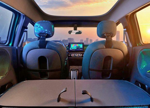 True to the Twingo’s DNA, the new electric prototype prioritizes adaptability with a sliding rear bench that splits 50/50. This configurable setup allows owners to maximize either passenger legroom or cargo capacity as needed. Five-door accessibility ensures easy entry and exit, while a panoramic glass roof floods the cabin with natural light, enhancing the sense of spaciousness.