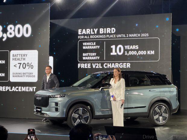 In terms of warranty, the car gets a 7-year/150,000km vehicle warranty, an 8-year/160,000km battery warranty with a 1-to-1 battery swap if the state of health falls below 70%. Early bird customers who order before the 2nd of March 2025 will get a 10-year vehicle warranty and a 10-year battery warranty with up to 1,000,000km coverage. There’s also a free V2L cable thrown in. Pricing is set at RM158,800.