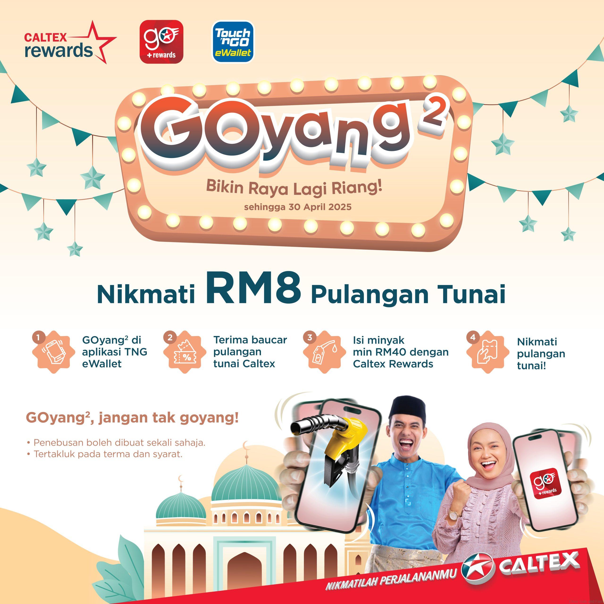 Fueling up with Caltex during Raya also allows you to enjoy exclusive cashback and rewards like GOyang2 for Cashback. How does it work? With the TNG eWallet app, shake your phone to unlock an RM8 Caltex cashback voucher with a minimum RM40 fuel purchase using Caltex Rewards.