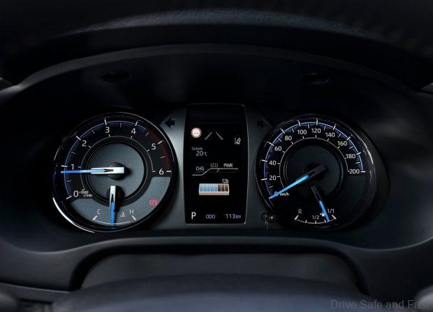In fact, this will be the first implementation of Toyota’s 48V Hybrid system. This mild hybrid powertrain uses the same 2.8L turbo diesel engine that we’re familiar with but introduces a new electric motor-generator and a 48V lithium-ion hybrid battery and a DC-DC converter. These components are integrated into the existing powertrain in a relatively straightforward way to minimize complexity partly due to the small size of the permanent magnet electric motor. This motor is directly driven by the engine and charges the battery. The battery also gets charged via regenerative braking. The electrical systems also benefit the overall efficiency by about 5%. The powertrain status is displayed on the vehicle’s multi-info display.